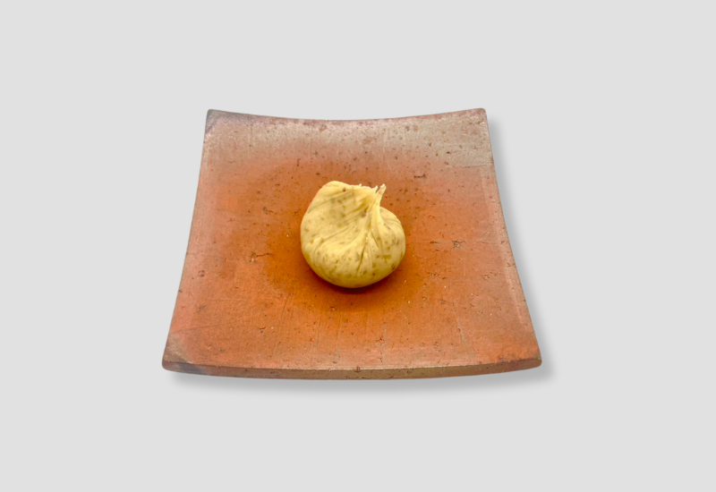 栗一粒を自家製こし餡と滋賀羽二重糯で丁寧に包みました。