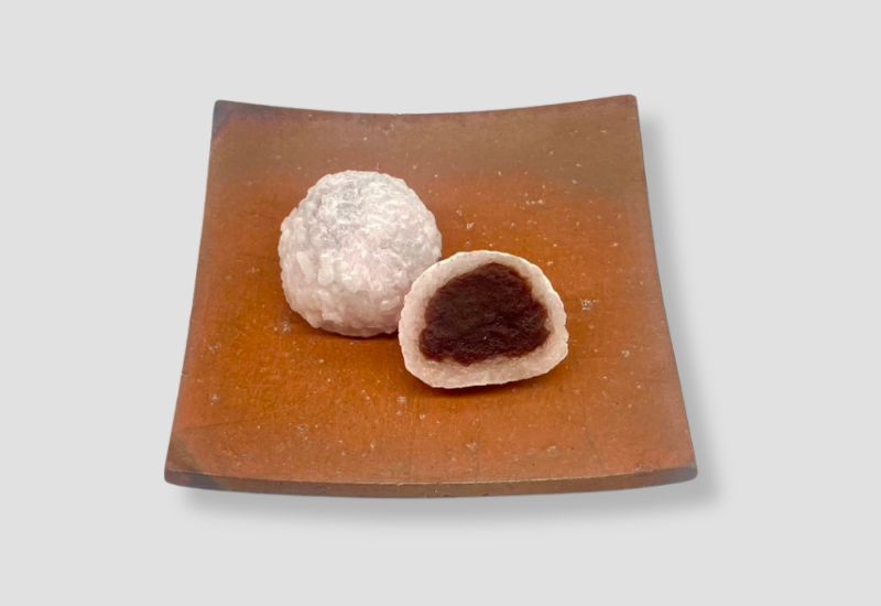 ふっくら炊き上げた赤えんどうをたっぷりと加えた滋賀羽二重糯で自家製粒あんを丁寧に包みました。